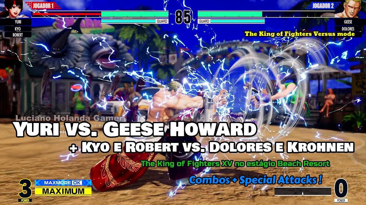 Yuri Sakazaki, Kyo Kusanagi e Robert Garcia vs. Geese Howard, Dolores e Krohnen McDougall no estágio Beach Resort [ Special Attacks ! ] Supreme Attack Blow’s | The King of Fighters XV !