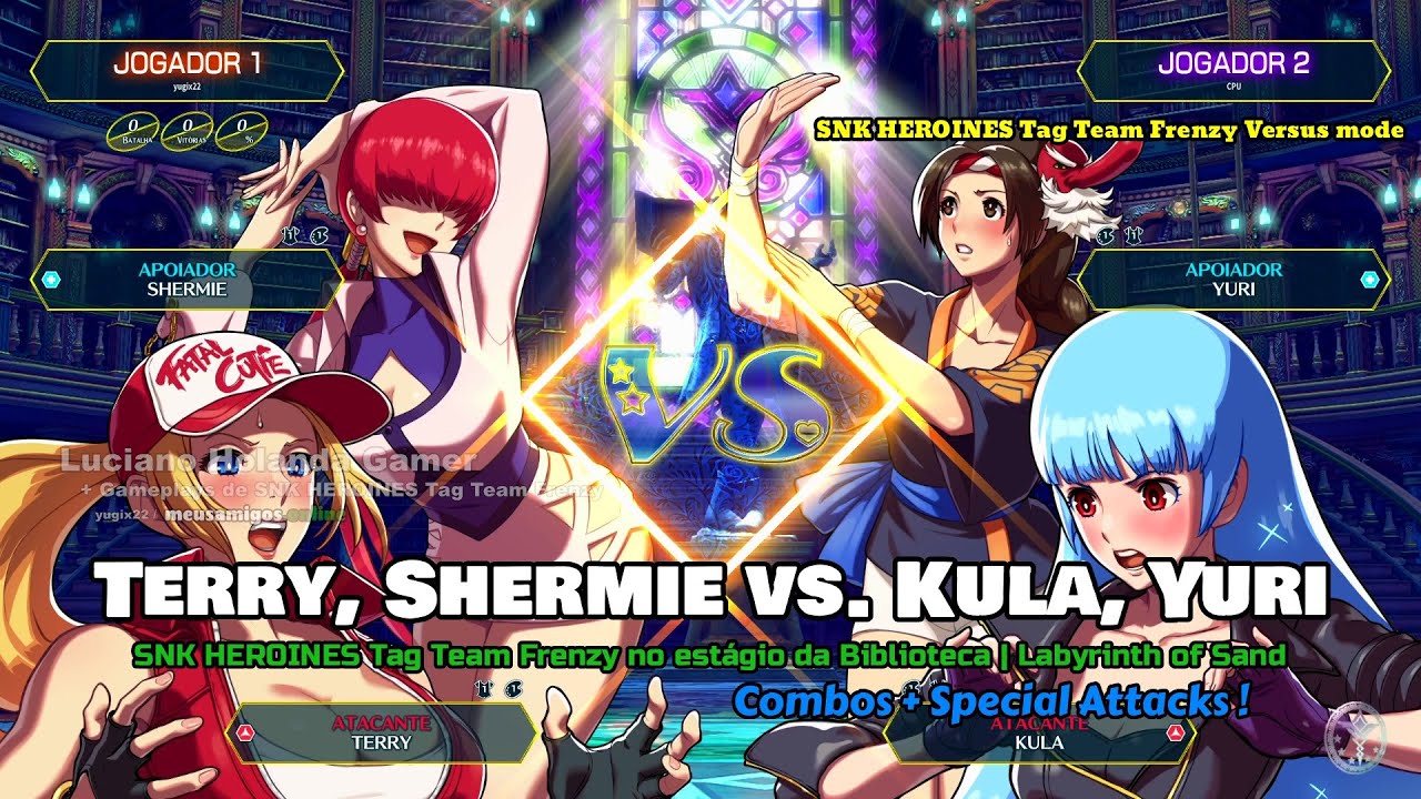 Terry, Shermie vs. Kula e Yuri no estágio da Biblioteca | Labyrinth of Sand [ Special Attacks ! ] SNK HEROINES Tag Team Frenzy !