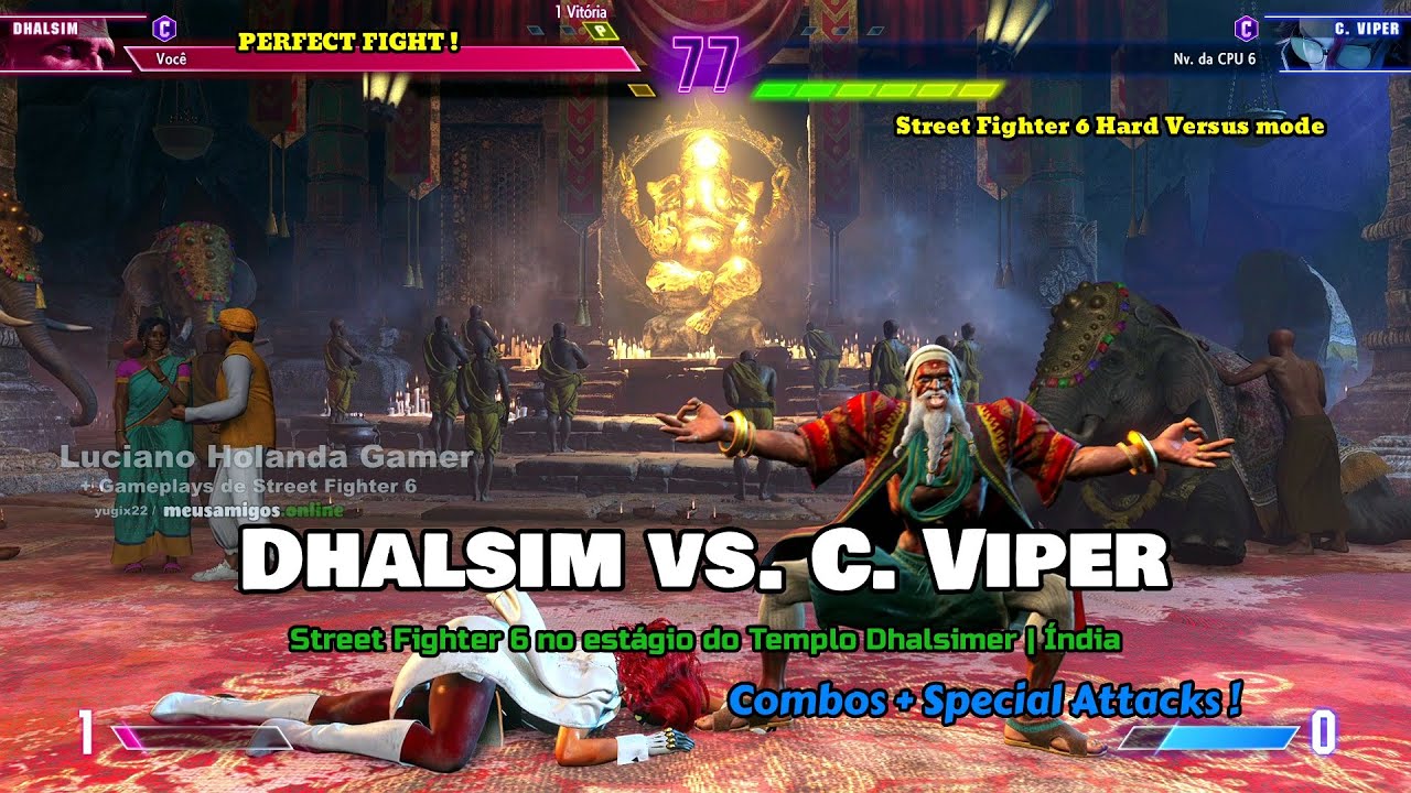 Dhalsim vs. C. Viper no estágio do Templo Dhalsimer | Índia [ Special Attacks ! ] LEVEL 1, 2 e 3 SUPER + CRITICAL ART ! Street Fighter 6 ! PERFECT FIGHT!
