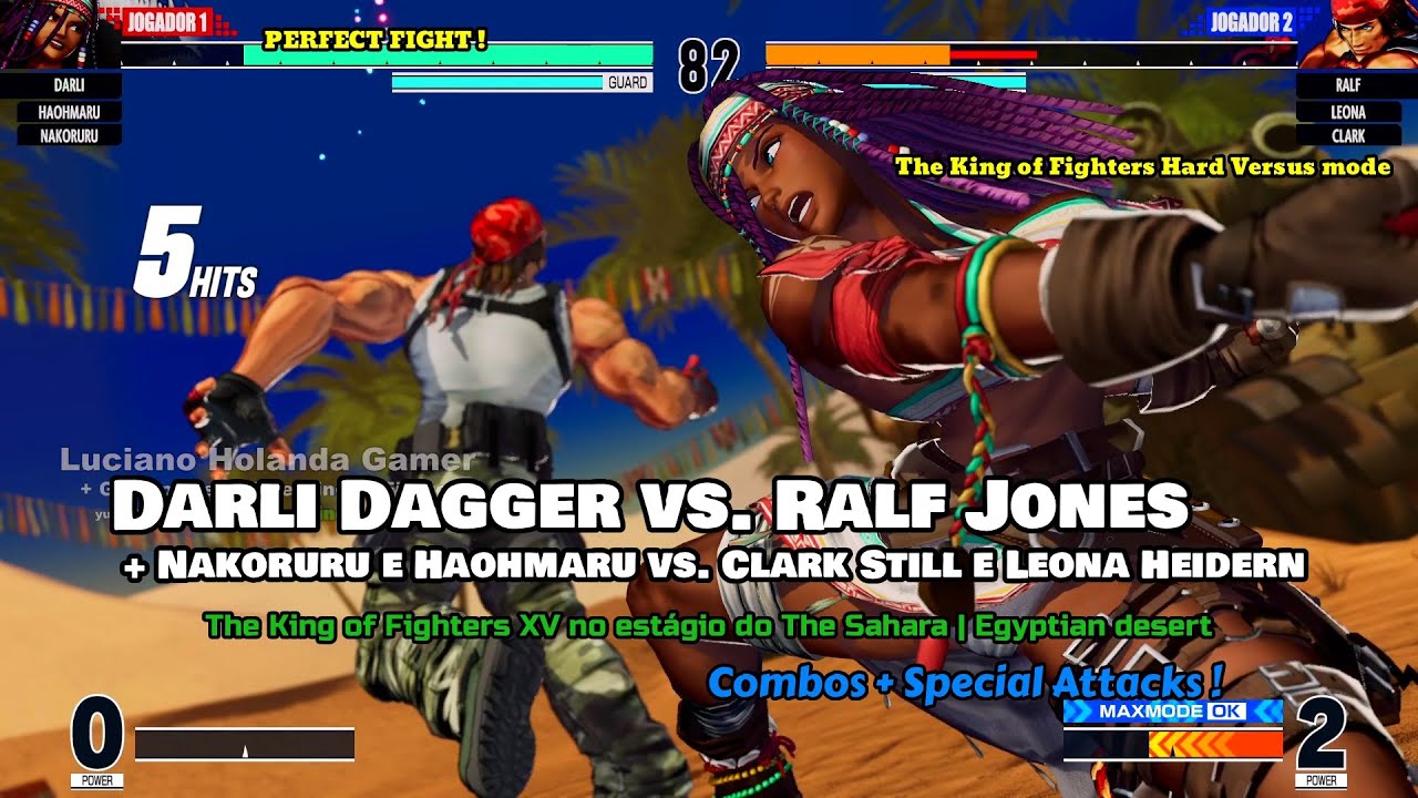 Nakoruru, Darli Dagger, Haohmaru vs. Clark Still, Leona Heidern e Ralf Jones no estágio The Sahara [ Special Attacks ! ] Supreme Attack Blow’s | The King of Fighters XV ! PERFECT FIGHT!