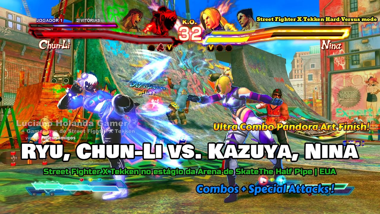 Ryu, Chun-Li vs. Kazuya e Nina no estágio da Arena de SkateThe Half Pipe | EUA [ Special Attacks ! ] LEVEL 1, 2, 3 SUPER + ULTRA COMBO PANDORA ART FINISH ! Street Fighter X TEKKEN !