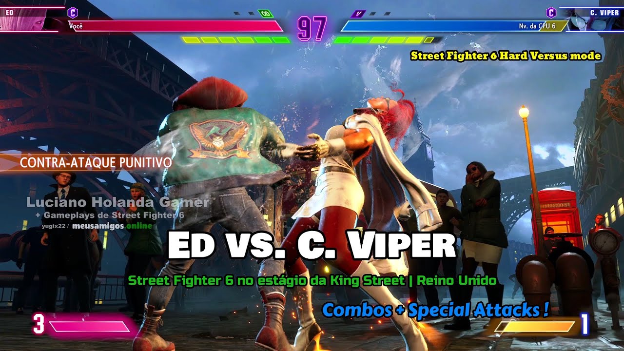 Ed vs. C. Viper no estágio da King Street | Reino Unido [ Special Attacks ! ] LEVEL 1, 2 e 3 SUPER + CRITICAL ART ! Street Fighter 6 !