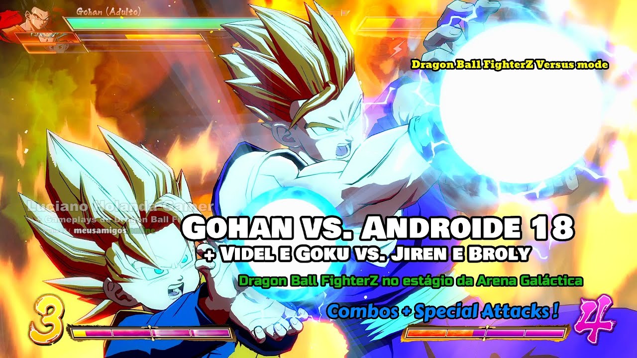 Gohan, Videl e Goku vs. Androide 18, Jiren e Broly no estágio da Arena Galáctica [ Special Attacks ! ] Dragon Ball FighterZ !